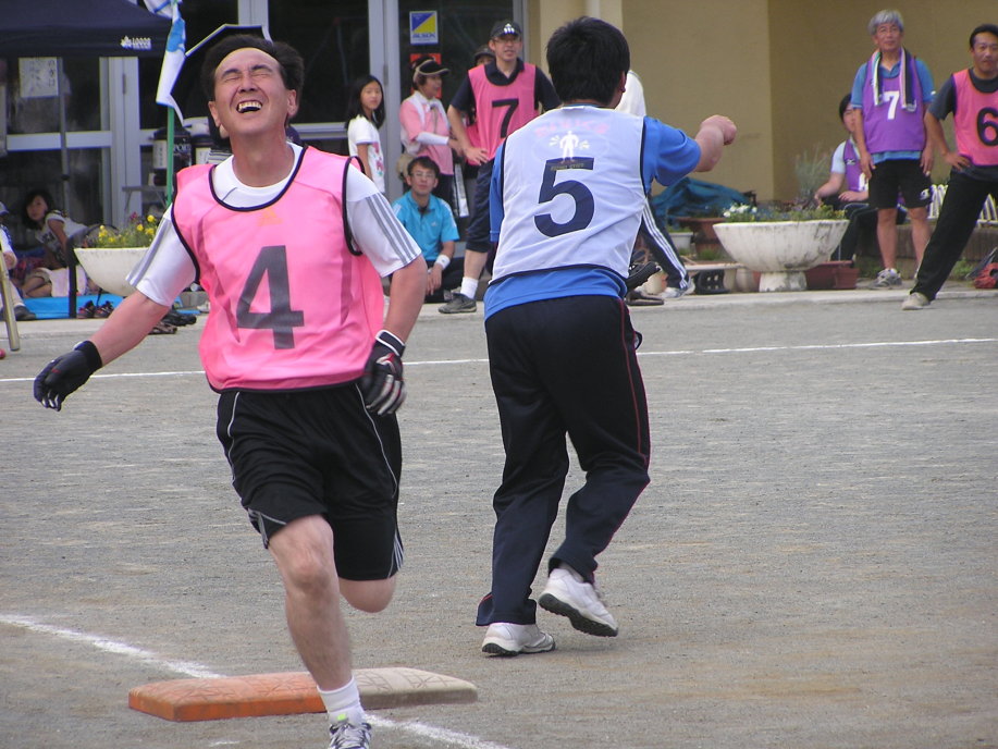 本年度は早園小学校の先生方にも参加をお願いしたところ、笑顔で楽しい一日にしましょうと快い返事を頂きました。毎年、職員室から「いいナー」と思っていたらしいですね。「参加したいなー」と言う気持ちは結果にも現れ、第三位という好成績を残しました。校長先生をはじめ、各先生のハッスルプレーに地域の皆さんからスゴイナー≠ニの声が。日頃、子ども達とグランドを走っていることの賜物でしょうね。校長先生に「勝利の秘訣は!」と尋ねたところ「監督による選手の配置が上手だったから」と笑顔が溢れておりました。
