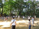 木立に囲まれた子之社境内で気持ちよく体を動かすと体操が終わるころには汗ばむほどでした。子ども達をはじめ、お父さん、お母さん、おじいちゃん、おばあちゃんはラジオ体操で小園の一日がスタートいたしました。右から曲げるところで左から曲げる人も・・・。「ラジオ体操って、難しいね!」との声が聞こえてきそうですね。