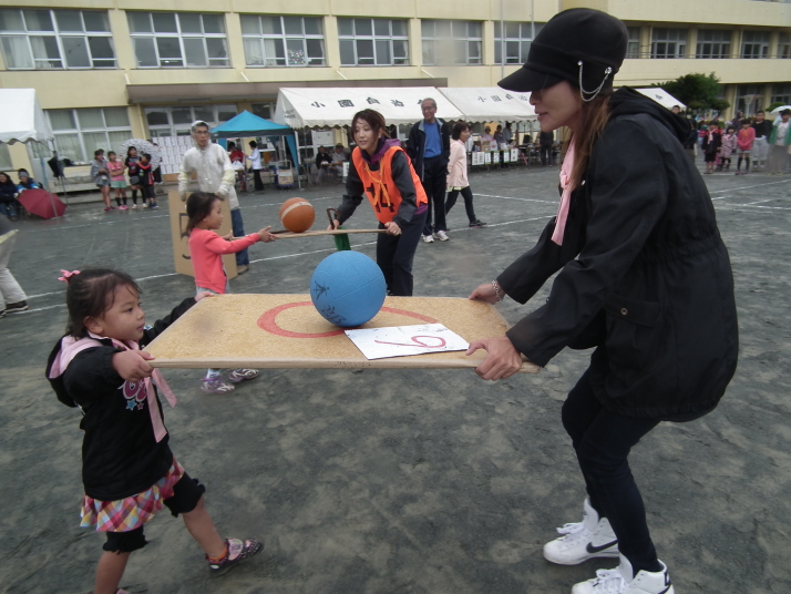 個人種目は子ども達が主役でした。パン食い競争、障害物競走、1500mでは日頃のワンパクぶりを発揮しておりました。笑顔が似合うお子さんとお母さん、お父さんが共同作業で行ったボール運びはほのぼのとした雰囲気を醸し出しておりました。