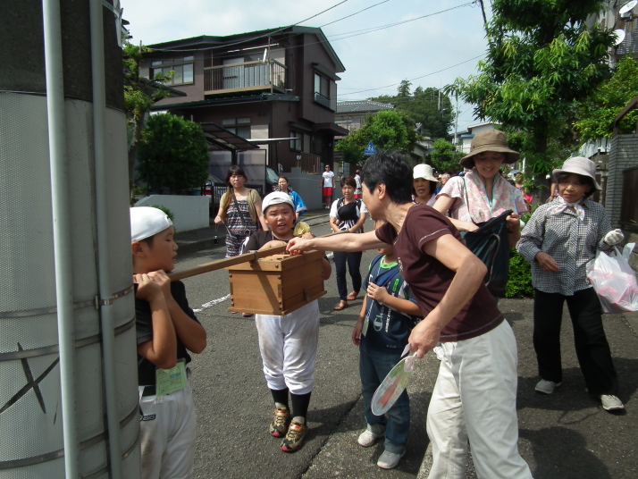 今年も昨年同様に子供たちに『神輿を担ごう・山車を引こう』をスローガンとした《スタンプラリー》を実施しました。スタンプカードは188枚配布され、その内173名が3区間(初日分)を巡行する快挙を達成した。達成感を味わった子ども達には笑顔があふれ出ており明日もやるぞー≠ニの意気込みがみなぎっておりました。