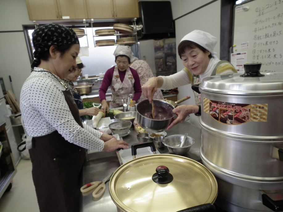 テーブルには、食生活改善推進協議会(通称…食改)の皆様が数日前から準備され、朝早くから真心込めて作られた料理です。お弁当は高齢者向けにやわらかく、味付けも多少薄めにするなど、細心の心配りが払われておりました。