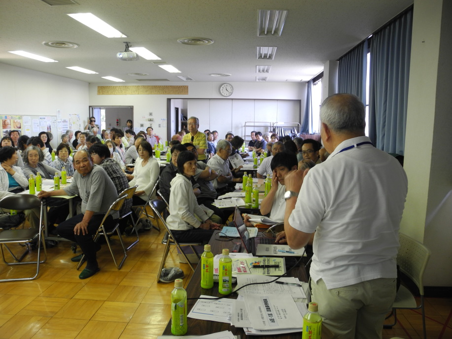 第一部では、綾瀬市市民協働課の桜井様を講師に、市民協働課が自治会や市民活動の窓口となり、綾瀬市内に14自治会があり、市自治会長連絡協議会があり、年6回定例会議を持ち、連絡し合っていることが紹介されました。自治会は、地域の自主的な任意団体であり、地震や火災などの災害時や地域環境の維持・整備をはじめ、日常生活で起こる様々な問題に対して、みんなで力を合わせて取り組み、その解決を図るという目的を持っております。これを実現するには、住み良い環境づくりや自主防災活動、地域の親睦を深めることが大切であるなど、具体的な活動内容が話されました。