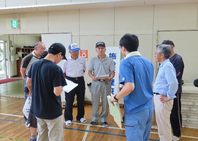 ![]() 「開設」訓練は、避難所である早園小学校体育館に早期に集まった人達が、どのように避難所を開設するのか、具体的に行動して確認を行いました。 続いて行われた「運営」訓練では、7つの班(総務、情報広報、被災者管理、施設管理、食料物資、救護、衛生)に分かれて、避難者の受け入れや仮設トイレの設置など、パニック状態が想定される避難所における様々な業務に本番さながらに真剣に取り組んでいました。 ……今回の訓練の目的とは何か…… 市民一人ひとりが避難所の開設・運営を体験することにより、防災意識の向上を図るとともに、「避難所運営マニュアル」(以下、マニュアル)の検証を行うことです。 マニュアルに従って様々な業務を実際に体験することで、不都合な点や課題を洗い出し、地域や避難所の実情にあったマニュアルに見直していくことが重要です。 訓練の最後には、各班から実態にそぐわない点や課題等が発表されました。今後、早園小学校避難所運営委員会において検討が行われ、マニュアルに反映していく予定です。 自治会員相互の親睦と交流を深め、明るく安全で安心な地域づくりを目指しましょう! |