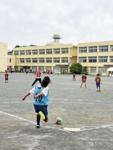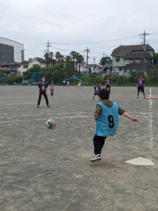 8時半から始まった開会式では、斉藤副会長に続き浅利自治会長から「今まで球技大会は例年6月中旬に開催していましたが、3年に2回は梅雨時期の雨で中止になった事もあり、今年度から5月中旬に行うこととなりました。斉藤副会長も言っていましたが、暑くもなく寒くもなく丁度良い気候で、天気にも恵まれました。今日は楽しく、和気あいあいと、かつ各区の名誉をかけて怪我なく終わって頂きたいと思います。」と挨拶があり、その後水島体育部長よりルール説明がありました。そして、9時頃いよいよ試合開始です。 試合は大人も子どもも皆一生懸命!!打席では少し緊張している人も、ボールを蹴ったらすぐに1塁に向かって駆け出し、セーフでもアウトでも見ている応援団はみんなが笑顔。守備では、思ったより遠くに飛んでびっくりする場面や、懸命にボールを追って走ったり、飛んできたボールをナイスキャッチ!する場面も。こちらも、守備がうまくいってもそうでなくても、「やったー!」「どんまい!いいよいいよ!」とみんなで喜んだり励ましたり、、そんな皆さんの姿が印象的でした。参加した方は「一昨年参加して楽しかった。去年は雨で開催されなかったから今年は参加できて嬉しい!」「普段あまり関りがない方とも、スポーツを通して楽しく交流できて良かったです。」とおっしゃっていました。