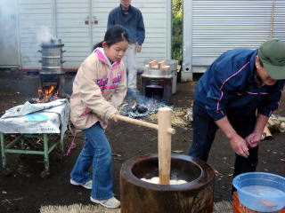 50Kgの餅を老若男女が力を合わせてつきあげました。つきたてのお餅は、きなこ、あんこ、なっとう、からみ等様々な味付けがされ、大変おいしくいただきました。子どもたちから大先輩までみんなでついたおもちを食べて、明年も元気に仲良く過ごしていけることでしょう。